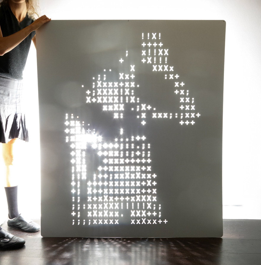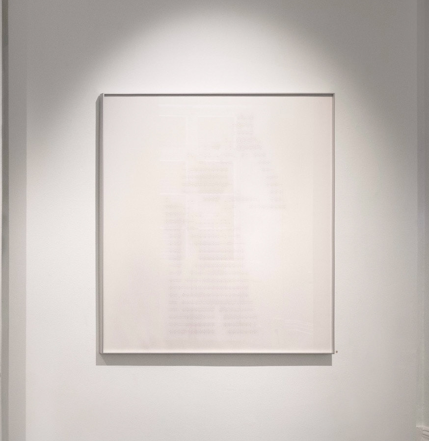 “ Crude Encryptions is a series that begins with a nude self-portrait, translated into ASCII code: a crude system of symbols, numbers, and letters used to render digital images. This manual conversion acts as a form of self-censorship: one that obscures the body from machines but not from human viewers, who can still intuitively read the figure through the abstractions.