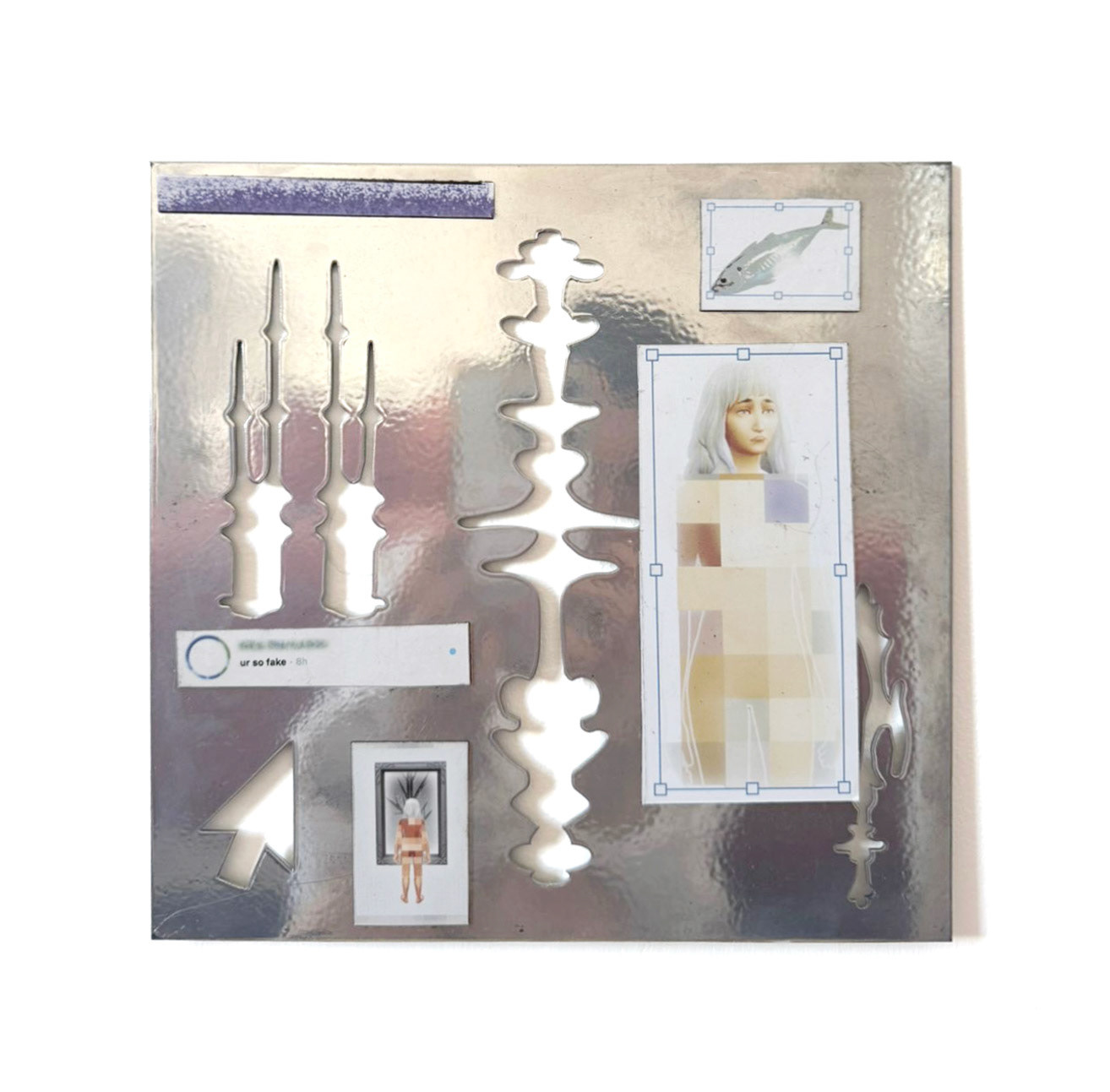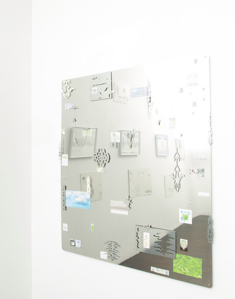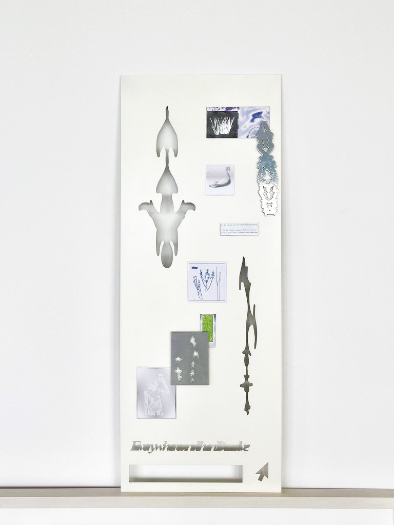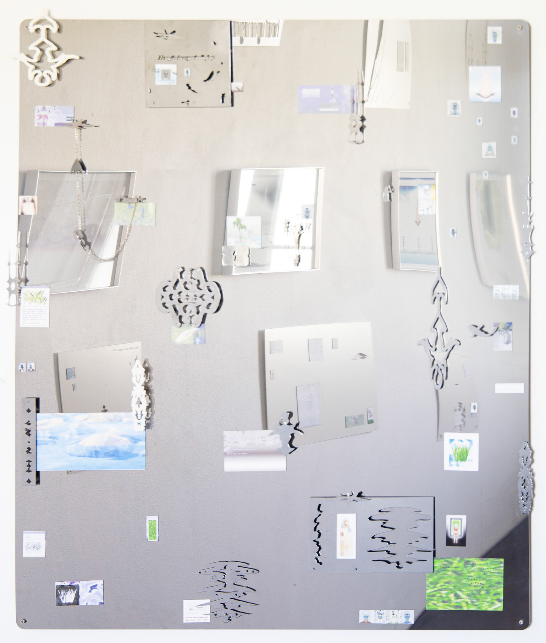 The magnetic components are printed with diaristic fragments: collected sketches, altered photographs, and visual notations drawn from Bailey’s lived and observed environment. These layered pieces act as a kind of personal archive, holding the residue of passing encounters, moments, and textures. Across the series, this visual language is recomposed through touch, creating an evolving surface of gesture and reflection.