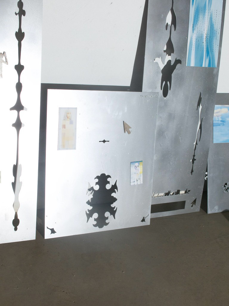 Language is cut directly into the steel: some words remain intact, others erode into ghostlike outlines. Phrases are suggestive rather than declarative, open to interpretation, memory, and mood.