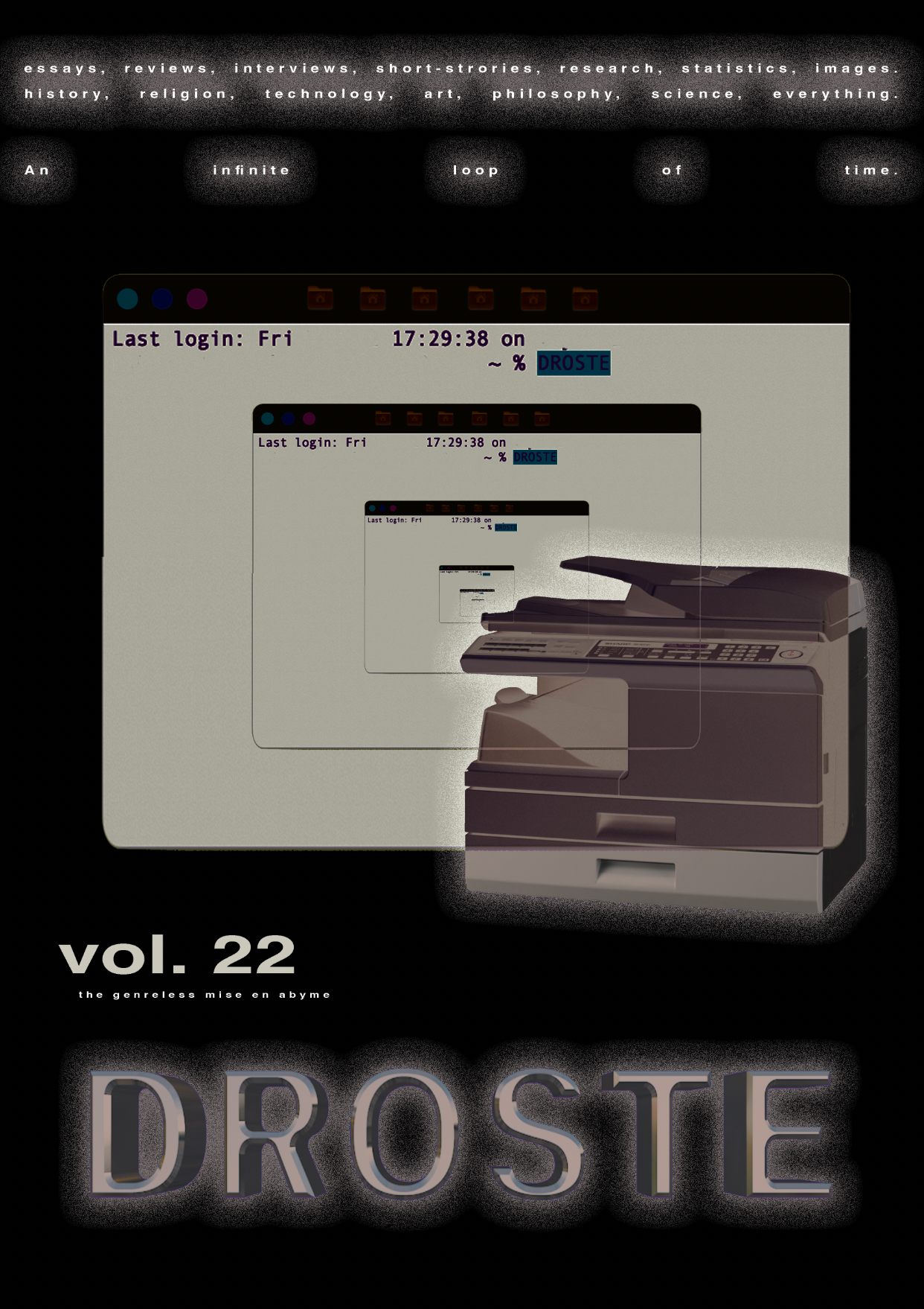 droste is droste is droste is droste is droste is droste is droste is a magazine about the now. Even if the now is not yet the now. And/or may never be the now.